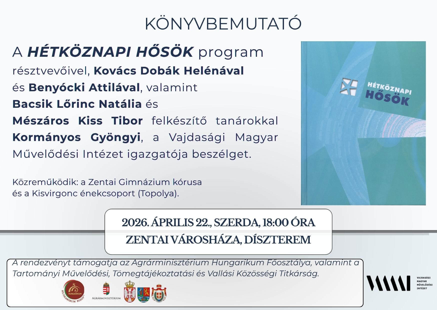„A Vajdasági Magyar Művelődési Intézet Hétköznapi hősök című programja több éven keresztül biztosított lehetőséget arra, hogy általános iskolás fiatalok/diákok – tanáraik és mentoraik segítségével – kutatóvá, krónikássá, felfedezővé váljanak. Az itt olvasható írások olyan személyek életútját mutatják be, akik tetteikkel példát mutattak közösségük előtt – tanítók, gazdák, iparosok, lelkipásztorok, közösségszervezők –, akiknek a munkája, a tevékenysége, a közösségért vállalt szerepe értékké vált, gyakan csendesen, reflektorfény nélkül.”
